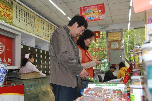 图四 2013年10月27日,农工党常德市委特约监督员配合市药监局在药品零售市场开展监督