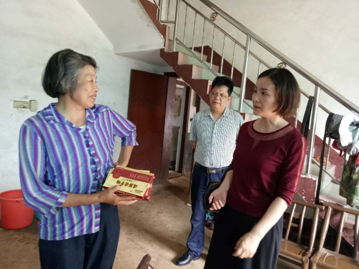 帮扶对象余凯的妈妈患严重肝病才刚刚康复,杨主委为她送上一批常用药品,询问她有什么困难要求并嘱咐随行人员做好记录争取下次走访慰问时加以解决。